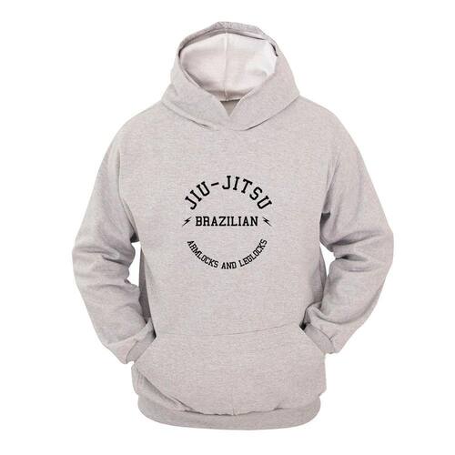 Moletom Masculino Canguru Estampa Jiu Jitsu Arm Lock Capuz - Cinza - G