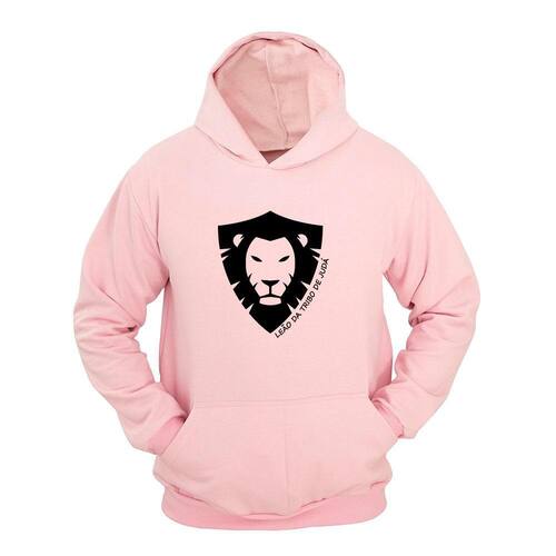 Moletom Masculino Canguru Estampa Leão de Judá com Capuz - Rosa Claro - GG