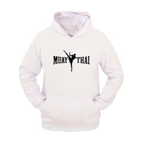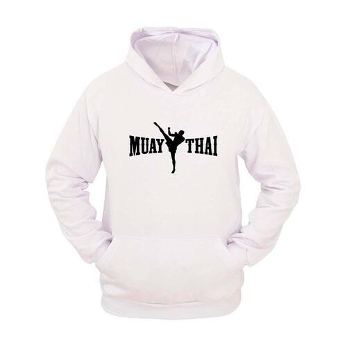 Moletom Masculino Canguru Estampa Muay Thai Com Capuz - Branco - P