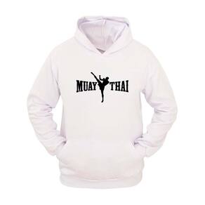 Moletom Masculino Canguru Estampa Muay Thai Com Capuz - Branco - G