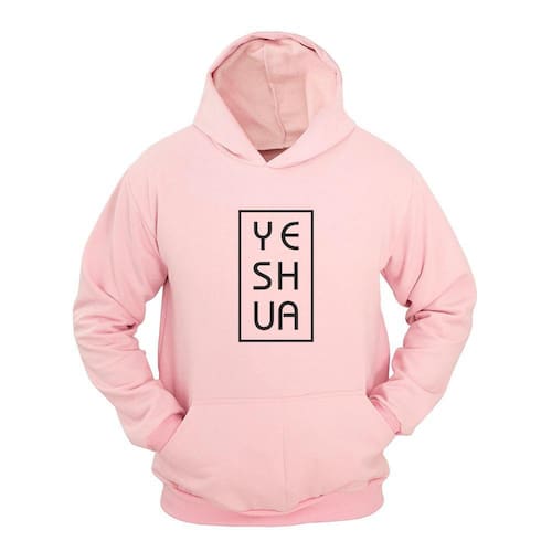 Moletom Masculino Canguru Estampa Yeshua com Capuz - Rosa Claro - GG