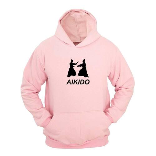 Moletom Masculino Capuz Bolso Canguru Estampa Aikido - Rosa Claro - M