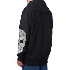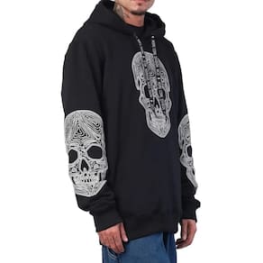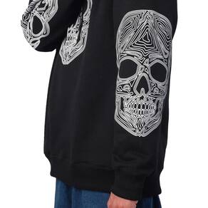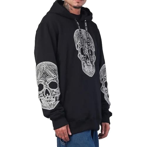 Moletom Mcd feito em modelagem regular, estampa frontal silk caveira MCD, capuz com cordão ajustador, etiqueta MCD clips aplicada no capuz, bolso embutidos na lateral, punho, barra em ribana, ilhós personalizado MCD, estampa caveira deslocada nas mangas, etiqueta bandeira embutida na lateral e tag personalizado MCD.