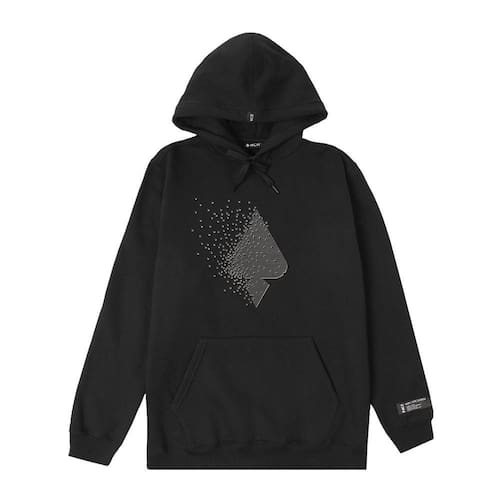 Moletom MCD felpado, com capuz, estampa frontal e etiquetas personalizadas.