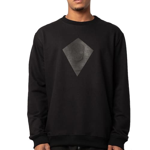 Moletom Mcd careca 300g, estampa frontal com caveira e etiquetas personalizadas.