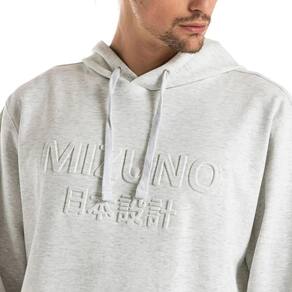 Jaqueta feita em malha de algodão, possui bolso interno diferenciado com fechamento em zíper nas laterais da jaqueta, conta ainda com capuz . Escrita Mizuno frontal com efeito 3D.