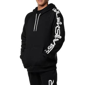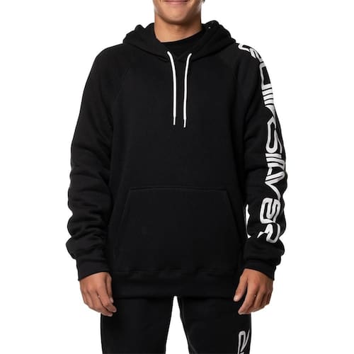 Moletom QuikSilver feito em modelagem regular, 305G, silk 1 cor na manga esquerda e no capuz e etiqueta aplicada no capuz.