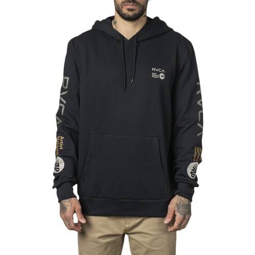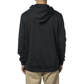 Moletom RVCA canguru fechado 320g, coleção ANP, estampa logo frente e mangas, punhos em ribana na barra da manga e corpo e etiquetas personalizadas.