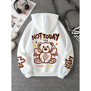 [Estilo Único] Com uma divertida estampa de urso e a frase “Não Hoje”, este moletom é uma maneira divertida e estilosa de expressar sua personalidade, tornando qualquer look mais interessante e descontraído.