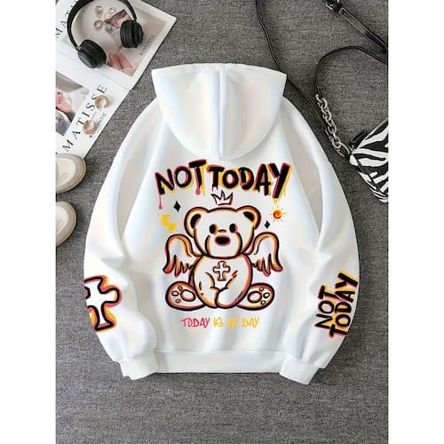 Descubra o conforto e o estilo irresistível do nosso Moletom com Capuz de Urso de Desenho Animado, com estampa “Não Hoje”, uma peça que promete ser sua aliada nos dias mais frios. Criado para homens e mulheres que buscam unir personalidade e praticidade em seus looks do dia a dia, este item essencial do guarda-roupa oferece mais do que apenas calor. Seja para um passeio casual ou para relaxar em casa, esse moletom é o companheiro perfeito para expressar seu estilo único, enquanto mantém o conforto em primeiro lugar.