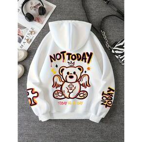 [Estilo Único] Com uma divertida estampa de urso e a frase “Não Hoje”, este moletom é uma maneira divertida e estilosa de expressar sua personalidade, tornando qualquer look mais interessante e descontraído.