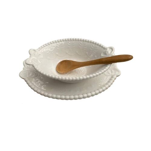 A Molheira Lacinho Cerâmica com Colher Bambu é um charmoso item para compor sua mesa. Feita em cerâmica branca, ela é perfeita para servir molhos e acompanhamentos de forma elegante e prática.