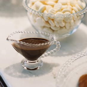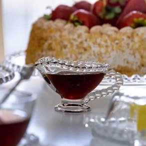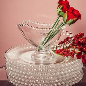A molheira Pearl Wolff em cristal transparente é um verdadeiro deleite para os amantes da elegância à mesa. Com sua construção refinada e design sofisticado, este porta molho para mesa é o complemento perfeito para qualquer ocasião gastronômica. Seu cristal transparente permite uma visão clara dos azeites, molhos e condimentos contidos. Além disso, esta molheira Wolff possui lapidação em bolinhas na borda, inspirada na beleza e no brilho único das pérolas, adicionando um toque de luxo à apresentação dos pratos.