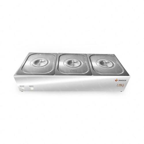 Molheira salsicheira elétrico cubas 1/2 - venâncio Descrição e característica técnica: - equipamento de acordo com a portaria 371/09 do inmetro, com selo de conformidade expedido pelo mesmo, cubas de acordo com o padrão mundial gastronorm de 1/2, podendo opcionalmente serem Substituídas por duas pequenas. - sistema de aquecimento das cubas é provido através de resistência posicionada embaixo das mesmas, sendo que sempre será aquecida a cuba gn. - modelo 127v ou 220v com resistência aletada dissipada, que funciona sem utilizar água, e com individual liga/desliga para cada resistência. - corpo externo em aço inoxidável. - cubas e tampas estampadas em aço inoxidável. - modelo elétrica - modelos m2e - 2 cubas , m3e 3 cubas . - resistência monofásica posicionado abaixo das cubas, sendo sempre 1 cuba quente e outra ambiente: M2e- 2 cubas 1 com resistência e outra ambiente . M3e- 3 cubas 2 com resistência e outra ambiente . - cuba : 8cm a x 23,5cm l x 12,5p Não tem banho maria. - consumo: 0,60 kw/h - total - potência: 2 x 300watts. - peso líquido: 6 kg - peso bruto: 5,6 kg - medidas externas: 20cm a x 84cm l x 37cm p - medidas embalagem:21cm a x 87cm l x 42cm p Marca: Não Informado