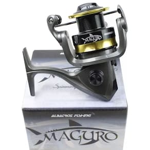 O Molinete Maguro 3000 é produzido em grafite de alta resistência, carretel em alumínio CNC com grande capacidade de linha e manivela dobrável reforçada. Possui design moderno em pinturas metálicas. Seu knob oferece conforto no recolhimento da linha durante toda a pescaria. O Molinete da Albatroz Maguro 3000 tem sistema de equilíbrio ultra leve de fácil controle e sistema de fricção suave, é o anti-reverso instantâneo e multi-ponto que não deixa dar tranco no carretel na hora da fisgada. Seu tamanho e capacidade de linha são ótimos para a pesca embarcada e para médios arremessos, tanto na pesca embarcada no mar, rios e açudes como na pescaria de praia.
