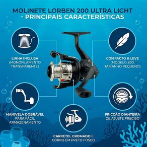 Prepare-se para sua pescaria com praticidade e eficiência. O Molinete Lorben modelo 200 é a escolha perfeita para quem busca um equipamento leve, compacto e pronto para o uso. Ideal para a modalidade Ultra Light, é excelente para a captura de peixes de pequeno e médio porte, como tilápias, lambaris, piaus e carás, seja em pesqueiros, rios ou lagos.