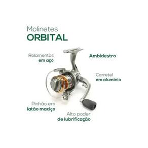 • Alto poder de lubrificação• Excelente sistema anti-reverso• Modelo ambidestroO Orbital é molinete para varas de pesca fabricado com carretel em alumínio e rolamentos de aço, que possuem alto poder de lubrificação e proporcionam maior fluidez na utilização.Seu pinhão é confeccionado em latão maciço com engrenagens em zamac de alto impacto.O molinete Orbital da Pesca Brasil possui excelente sistema anti-reverso infinito, além de fricção com ajuste milimétrico.É um modelo ambidestro, permitindo a utilização de ambos os lados com total segurança e performance.Se você está buscando um molinete de fácil acesso e ótima durabilidade, o Ocelos é uma bela opção.Informações gerais:• Material: Carretel em alumínio e rolamentos em aço• Rolamentos: 3BB + 1RB• Drag (kg): 7• Relação de recuo: 5.2:1• Marca: Pesca Brasil