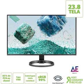 Faça uma escolha sustentável sem abrir mão da qualidade com o Monitor Acer Vero RL242Y. Construído com plástico reciclado pós-consumo, este monitor de 23.8" Full HD IPS oferece Cores fantásticas e um design ecológico. A taxa de 75Hz garante uma visualização mais confortável e fluida para o dia a dia.