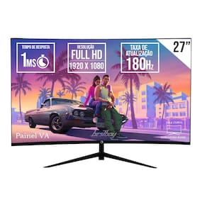 - Tamanho da Tela: 27 WIDESCREEN 16:9 Curvo - Resolução (máx): 1920 X 1080 180Hz - Antireflexo - Tempo de resposta: 1ms - Curvatura R1500 - Painel VA - Bivolt - Furação para Suporte de Parede: 75X75 - Cor: Preto - Suporte de cores: 16,7 milhões - Brilho: 250cd/m2 - Contraste: 1000:1 - Entradas: 1*DisplayPort, 1*HDMI 1*USB