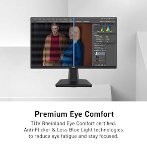 EyeSergo com tecnologia Anti-Flicker ajuda a evitar cansaço visual e fadiga - A taxa de atualização de 100 Hz oferece uma melhor experiência de visualização com imagens sem cintilação - o MSI Eye-Q Check ajuda a verificar automaticamente os olhos e lembra de descansar enquanto usa o monitorar por um longo tempo