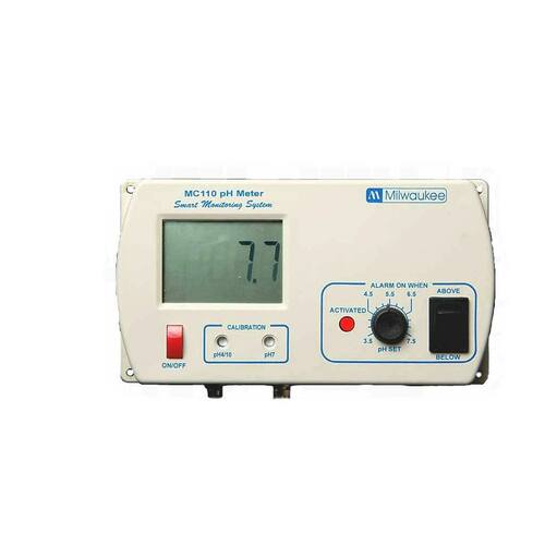Monitor de pH Milwaukee MC120 com kit de montagem, pH de 0,0 a 14,0, precisão de pH de +/- 0,2, ponto de ajuste de pH de 5,5 a 9,5 - Ótima precisão - Ponto de ajuste de pH de 5,5 a 9,5