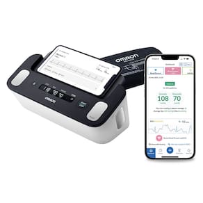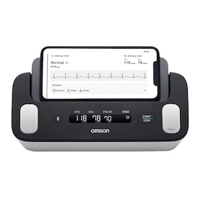 Monitor Pressão Arterial Omron Braço com ECG Compatível com Omron Connect via Bluetooth; • Para uso da função de ECG, é necessário um smartphone; • Monitor de pressão de braço com ECG de 1 derivação s