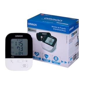 Aparelho de Pressão Arterial de Braço Progress Compatível com OMRON Connect (via Bluetooth); 1 usuário + modo convidado; Indicador de pressão arterial elevada; 60 memórias com data e hora; Valor médio