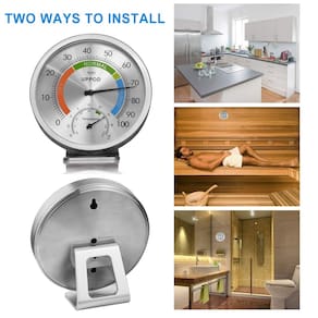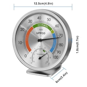 Por que você precisa de um higrômetro Se você deseja garantir que sua casa tenha níveis de umidade adequados, deseja prever o clima antes de sair, ou ter um jardim ou estufa para cuidar, um dos higrômetros de qualidade pode ajudá-lo a obter leituras precisas sempre. Um bom monitor de umidade e temperatura ajudará muito no seu dia a dia. Como: R: Ajuda você a prever o clima - Com um higrômetro, você pode escolher as roupas que deve usar para estar sempre preparado e seguro. B: Ajuda a aumentar o conforto em sua casa - Você pode verificar o teor de umidade no ar com este higrômetro confiável para saber se você precisa ligar o sistema de aquecimento ou ventilação. C: Minimiza problemas de saúde - Se a umidade em sua casa estiver muito alta, você corre o risco de ter mofo e bactérias se multiplicando. Especialmente quando você tem crianças ou animais de estimação pequenos. E o ar seco pode causar coceira na pele, problemas com seios nasais, tosse, bem como outros sintomas. Com um higrômetro, você pode manter sua casa na zona Cachinhos Dourados e garantir que a umidade não seja muito alta nem muito baixa, mas perfeita para bem-estar e conforto da sua família. D: Evite danos à sua propriedade cara - Como seus móveis, instrumentos musicais e qualquer outra propriedade E: Cuide de seus animais de estimação exóticos - Como tarântulas, centopéias, lagartos, insetos ou até mesmo algumas espécies de mamíferos F: Permita que suas plantas prosperem O higrômetro tem precisão dentro de +\- 5%. Depois de receber o produto, deixe-o por 1 a 2 horas para permitir que ele faça a calibração automática, se tiver alguma dúvida ou sugestão durante o uso, fique à vontade para nos informar, ficaremos felizes em entrar em contato com você dentro de 12 horas. - Higrômetro interno e externo de 12,7 cm [a versão inglesa atualizada]: o diâmetro de 13 cm torna este higrômetro fácil de ler a umidade e a temperatura. É grande o suficiente para ver de dentro da nossa sala de estar sem abrir a porta, mas pequeno o suficiente para não gritar "Olhe para mim!" Especialmente conveniente para os idosos, com todo o pacote o torna uma ótima opção de presente para seus amigos e familiares - Bom complemento para monitorar a umidade do ar: com um suporte de alumínio, é totalmente sem fio para mesa, e com o design montável, pode ser pendurado na parede, ótimo para você usá-lo como um medidor de umidade interno para sua casa, quarto, quarto infantil, garagem, oficina, celeiro, porão e até mesmo seus charutos. Ou como um higrômetro analógico externo para o seu pátio e sua estufa - A umidade é importante: um medidor de monitor de umidade preciso é uma maneira acessível de monitorar a umidade em um nível ideal. Especialmente quando você ou seus filhos estão tendo alergias ruins, seios nasais, asma ou qualquer tipo de problema respiratório, este medidor de umidade ajudará você a garantir que a umidade em sua casa seja boa o suficiente - Termômetro de hidrômetro de aço inoxidável: ao contrário da maioria dos outros higrômetro analógico no mercado, este é feito de aço inoxidável com a tampa de vidro e a placa colorida, parece realmente estável e elegante, o que o torna uma ótima decoração de parede interna/externa. E não há necessidade de substituição de bateria, ajuda a proteger o meio ambiente - Intervalo de medição: termômetro preciso entre -30 e 50 °C acomoda todos os climas, umidade de 1-99% UR (este higrômetro tem precisão dentro de +- 5%). Ideal para pátio, decoração de parede, casa, quarto, casa, escritório, charuto, incubadora, répteis, planta, estufa