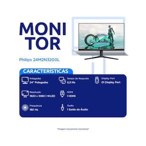 O Monitor Philips Gamer 24M2N3200L chegou para atender quem busca performance e qualidade visual em jogos e conteúdos multimídia. Com uma tela de 24 polegadas e resolução Full HD -1920 x 1080-, esse monitor oferece uma excelente nitidez, ideal para jogos rápidos e detalhados, para uma experiência imersiva e fluida. Confira mais detalhes: