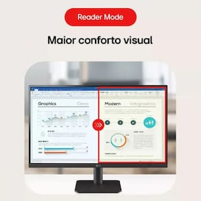 Com resolução Full HD -1920x1080-, 100 Hz de taxa de atualização e tempo de resposta de 5 ms, este monitor garante nitidez e fluidez para qualquer tipo de conteúdo. Recursos como Super Resolution+, Black Stabilizer e Flicker Safe asseguram mais clareza nas imagens e conforto visual. O Modo Leitura reduz a emissão de luz azul, ideal para longas sessões de uso.