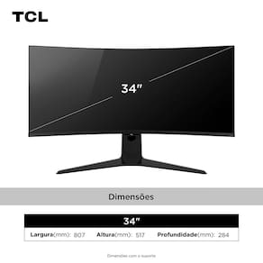 O Monitor TCL 34R83Q combina qualidade de imagem com alto desempenho: tela QD Mini LED de 34", resolução WQHD e HDR1400. Com taxa de atualização de 180 Hz e 1ms de resposta, é ideal para jogos rápidos e imagens fluidas. Possui conexões HDMI, DisplayPort e design moderno na cor preta.