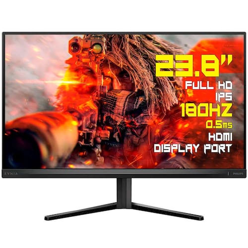 O MONITOR GAMER PHILIPS EVNIA 24M2N3200L de 23,8 polegadas com painel Fast IPS Full HD proporciona taxa de atualização de 180Hz e tempo de resposta de 0,5ms para imagens ultra fluidas e nítidas. Compatível com AMD Adaptive-Sync, NVIDIA G-SYNC via DisplayPort e HDR10, oferece recursos gamer como SmartImage Game, Smart Crosshair e realce de sombras, entregando vantagem competitiva e imersão em cada partida.