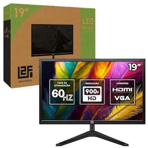 Descrição do Produto: Tenha mais qualidade visual e versatilidade em sua estação de trabalho com o Monitor LED 19 L2F Widescreen, um equipamento ideal para uso doméstico, ou educacional. Com resolução HD e proporção widescreen 16:9, este monitor proporciona uma experiência visual confortável, com imagens nítidas e cores vivas para realizar tarefas com maior produtividade e qualidade. O modelo conta com entradas HDMI e VGA, garantindo compatibilidade com diversos dispositivos, como computadores, notebooks, de TV digital e consoles. Seu design moderno, com acabamento preto e bordas finas, proporciona uma aparência elegante, ideal para ambientes corporativos e residenciais. Além disso, é um equipamento bivolt automático, oferecendo praticidade na instalação e segurança contra variações de tensão. A base estável permite uso seguro em diversas superfícies, e seu tamanho compacto se ajusta facilmente a espaços reduzidos. Visão Geral: Tela de 19 com proporção widescreen 16:9 Resolução HD: ideal para navegação, vídeos e documentos Entradas HDMI e VGA: conectividade com diversos dispositivos Design compacto com estrutura leve e elegante Alimentação bivolt automática: praticidade e segurança Acabamento na cor preta com base firme e estável Benefícios para o Usuário: Excelente opção custo-benefício para home office, estudos ou Compatível com notebooks e desktops antigos e modernos Ocupa pouco espaço e combina com qualquer ambiente Fácil instalação, com suporte aos principais tipos de conexão Qualidade de imagem nítida e visual confortável Ficha Técnica: Marca: L2F Modelo: Widescreen 19 Tamanho da Tela: 19 polegadas Resolução: HD 1366 x 768 Proporção da Tela: 16:9 Conectividade: HDMI, VGA Voltagem: Bivolt automático 110/220V Cor: Preto Tipo de painel: LED Tempo de resposta: Aproximadamente 5 ms Brilho: 200 cd/m aproximado Contraste: 600:1 típico Peso Líquido: Aproximadamente 1,9 kg Peso Bruto: Aproximadamente 2,5 kg Dimensões da embalagem AxLxP : 36 x 47 x 12 cm Homologação Anatel: 061982314497 Marca: Não Informado