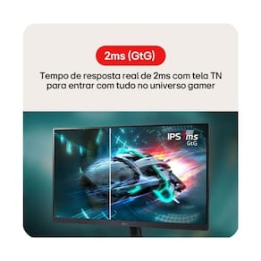 Redução de desfoque de movimento de 1 ms para jogabilidade nítida - A Redução de Desfoque de Movimento (MBR) de 1 ms mantém a jogabilidade em ritmo acelerado nítida, minimizando o desfoque e o efeito fantasma. Seja rastreando inimigos ou correndo para a linha de chegada, cada quadro permanece nítido, dando a você a vantagem quando mais importa.