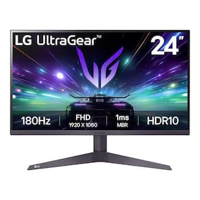 De 22" a 24.9"Monitor de jogos Ultragear LG 24GS50F-B FHD (1920 x 1080) de 24 polegadas com 180 Hz, 1 ms MBR, HDR10, AMD FreeSync, HDMI, DisplayPort, design virtualmente sem bordas de 3 lados, preto - Melhore seu jogo com a velocidade do UltraGear - Experimente o próximo nível de desempenho em jogos FHD. - Taxa de atualização de 180 Hz e MBR de 1 ms - Prepare-se para uma jogabilidade suave com taxa de atualização de até 180 Hz e MBR de 1 ms. A velocidade mais rápida e a ação mais suave permitem que você responda rapidamente aos oponentes e fique um passo à frente da concorrência. - AMD FreeSync - O AMD FreeSync equipa os jogadores com uma experiência de jogo fluida e praticamente sem interrupções. Com uma taxa de atualização de até 180 Hz em resolução Full HD e jogabilidade de baixa latência, você nunca perderá um quadro da ação enquanto joga com desempenho máximo. - Design centrado no jogador - Perca-se no jogo com um design ultrafino de três lados praticamente sem bordas que otimiza o espaço em sua estação de batalha. Com duas portas HMDI e conectividade DisplayPort em uma tela com inclinação ajustável, jogue de acordo com suas especificações. - Cor HDR10 - Mergulhe em um mundo de cores e contrastes brilhantes e dramáticos com o suporte HDR10. - GUI de jogo aprimorada - Escolha entre uma variedade de modos, incluindo Gamer, FPS ou RTS, para otimizar as configurações de exibição para a melhor visualização possível. - Sincronização dinâmica de ações - responda à ação conforme ela acontece com um atraso de entrada reduzido. - Estabilizador preto - O estabilizador preto é seu aliado para atacar ou defender em cenas escuras. - Contador de FPS - Seus quadros por segundo exibidos para dados em tempo real. - Mira - A mira da tela central oferece visão e precisão aprimoradas para maior exatidão.
