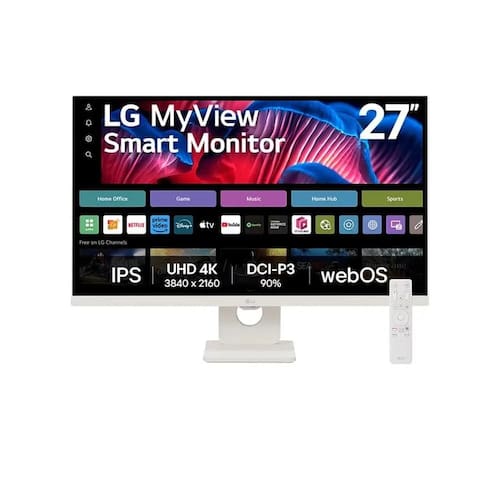 Monitor LG MyView Smart 27SR73U-W Tela IPS 4K 27 polegadas, WebOS, ThinQ Home, Air Play, Screen Share, Bluetooth. Design slim com 3 bordas ultrafinas. Acesso a nuvem sem a necessidade de um PC. Tratamento Anti-Reflexo. HDR 10. Brilho automático. Economia de energia inteligente.Tamanho da tela