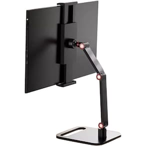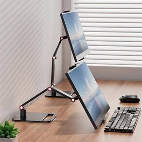 Material: liga de alumínio e aço Cor: preto Tamanho da embalagem: 32 x 22 x 8 cm Peso da embalagem: 1,80 kg Lista de embalagem: 1 x suporte de monitor portátilProjetado para monitores portáteis de até 17,3 polegadas, este suporte fornece suporte estável para telas secundárias, tablets e telas leves. O braço ajustável de três seções permite um posicionamento flexível em altura e ângulo, ajudando a obter uma visualização ergonômica para trabalho, jogos ou streaming. A base metálica sólida garante uma forte estabilidade e evita oscilações, mantendo seu monitor portátil firmemente colocado em mesas ou mesas. O suporte giratório e com inclinação ajustável suporta visualização em vários ângulos, ideal para configurações de tela dupla, apresentações e uso prolongado de telas. O design compacto e portátil o torna adequado para escritórios domésticos, estações de trabalho de viagens e espaços pequenos, fácil de montar e armazenar.