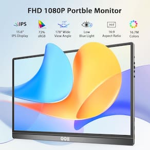 Monitor portátil 15,6" FHD 1080P com tela IPS, design ultrafino, capa inteligente multifuncional, conexões USB-C e HDMI.Vendido e entregue por nocnoc