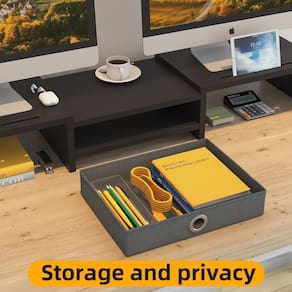 -?Armazenamento perfeito com gaveta?Nosso elevador para monitor de computador inclui gavetas deslizantes práticas de 13 polegadas, para armazenar itens como post-its, utensílios de escrita e dispositivos móveis.