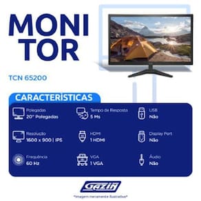 Monitor tcn 20p led 5ms hdmi vga - 65200 .. Cor: preto - voltagem: bivolt