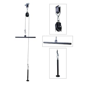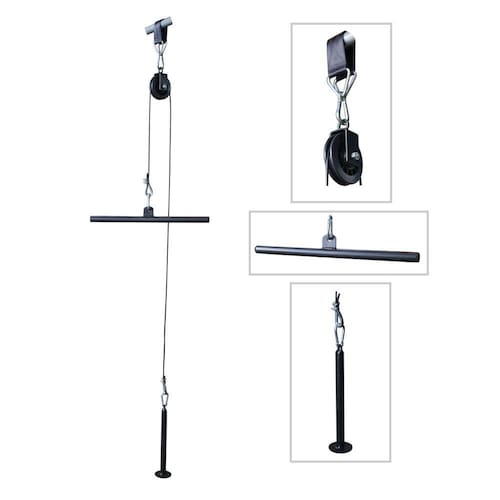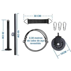 Mono Cross Over De Polia Móvel - Pulley Puxada Alta S O Mono Cross Polia Móvel deve ser utilizado com anilhas para carga/peso no equipamento. O Mono Cross possibilita execução de exercícios de puxada alta, permitindo o desenvolvimento e ganho de massa muscular em seus tríceps e costas. Conteúdo:1 suporte com polia móvel com roldana PP de 100 mm;1 Barra reta de 50 cm;3 mosquetões medida 7X70 mm;1 Suporte para Anilhas de 30 cm;1 Alça para engate da polia;2,30 metros de cabo de aço 1/8 revestido;Capacidade de carga do Mono Cross: 100kg. IMPORTANTE: o conjunto não acompanha as anilhas. Também não acompanha a barra de fixação na parede, o equipamento precisa ser alçado em alguma estrutura como uma barra fixa ou Rack. Marca: Iron Health Equipamentos