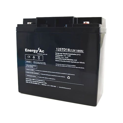Acumulador AGM para uso em No-Break (UPS), energia solar e eólica, telecomunicações, PABX, aplicações em ambientes externos, segurança e alarmes, cerca elétrica, equipamentos médicos, iluminação de emergência, entretenimento e brinquedos elétricos. Expectativa de vida: CINCO ANOS.GARANTIA: UM ANO para uso em NOBREAK e TRÊS MESES para outros usos.Perderão a garantia casos com os terminais soldados ou com sinais de soldagem ou uso inadequado. Tensões:De carga: Flutuação: 13,7V a 13,9V; Carga Cíclica: 14,6V a 14,8V.De descarga: 1,75V / elemento ou 10,5V. Dimensões:Comprimento x Largura x Altura (mm/cm): 181 x 77 x 167 mm / 18,1 x 7,7 x 16,7 cm.Principais Características:- Acumulador regulada por válvula - VRLA.- Tecnologia AGM com eletrôlito absorvido.- Livre de Manutenção.- Vaso em resina ABS especial com elevada resistência mecânica.- Opera em larga faixa de temperatura: -15 a 50ºC.- Maior expectativa de vida.- Menor taxa de auto descarga.- Apresenta alta performance em elevadas taxas de descarga.- São projetadas para não permitir a liberação de gases nocivos à saúde.- A quantidade de gases exalada é desprezível.- Podem ser utilizadas conjugadas com outros equipamentos.- Pode ser utilizada em diversas posições.- Permite uma instalação simples e otimizada.- Atende o guia EUROBAT.- São seguras para o transporte aéreo (IATA-A67).