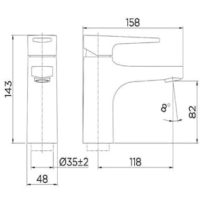 - Comprimento do produto: 158 mm - Altura do produto: 143 mm - Largura do produto: 48 mm - Diâmetro do furo para instalação: 35 mm