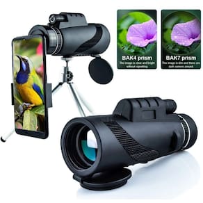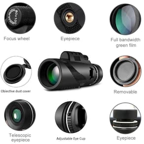 ARTIGO: Monocular 80x100 à prova d'água para smartphone com tripé DESCRIÇÃO: -Portátil e compacto, este monocular externo 80x100 é a ferramenta perfeita para caçar pássaros, assistir a shows, jogar golfe, caçar, escalar, caminhar, pescar, participar de eventos esportivos ou até mesmo observar uma paisagem incrível. -Monocular de visão HD: ampliação de 80X com design de lente prisma BAK4, oferecendo uma paisagem mais clara e colorida. -Tem uma grande ocular HD de 22 mm, quanto maior a abertura, maior a luz que entra. Quanto mais clara a imagem pequena, mais saturado é o tom e maior o grau de redução. Mais detalhes podem ser vistos.\ N-Fácil de focar: pode ser dobrado para coincidir com a distância de seus olhos, adequado tanto para adultos quanto para crianças.\ n Campo de visão amplo: o filme verde aprimorado multicamadas FMC aumenta a transmissão de luz para imagens mais brilhantes e de maior contraste. -- Ele o ajudará a ver as coisas com pouca luz, mas não o ajudará a ver as coisas no escuro. -- Com a bússola incluída no monocular, você nunca se preocupar com a possibilidade de se perder na viagem. -Equipado com um tripé e um suporte para smartphone: deixe as mãos livres para ver a vista mais bonita pelo telefone ou simplesmente tirar fotos. -Operação com uma mão: leve e compacta, mais fácil e conveniente para uso externo. -Durável de usar: o revestimento de borracha protege o corpo contra impactos, água e desgaste. Design impermeável e à prova de umidade, adequado para todos os tipos de ambientes, mas não pode ser imerso em água. ESPECIFICAÇÕES: Cor: preto Material da caixa: plástico ABS/PP Modelo: 80X100\ nAumento: 80x\ nCampo de visão: 1500m/9500m\ Diâmetro da peça: 22mm\ nDiâmetro da lente do objeto: 52mm\ nSistema de foco: Focus OcularLens Diâmetro:\ n 52mm Tipo de prisma: BAK4Sistema de prisma: prisma de tecno\ Revestimento óptico: filme totalmente verde FMC Sistema multicap\ nFocus: foco único central\ nLargura do telefone compatível: 5,8-8,5 cm\ nTamanho monocular: aprox. 155x55x55 mm O pacote INCLUI: 1 x monocular 80x1001 x Tripo1 x suporte para smartphone 1 x bolsa 1 x cordão 1 x pano de limpeza 1 x manual do usuário