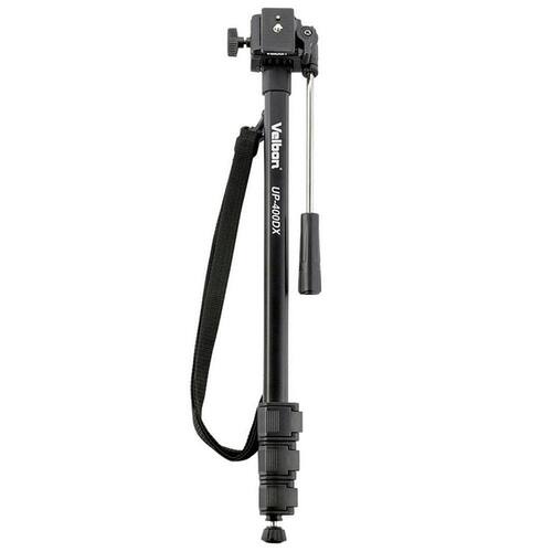 O monopé Velbon UP-400DX é equipado com uma cabeça para vídeo com movimento de inclinação para frente e para trás. Ideal para gravação de vídeos em câmeras DSLR ou camcorders.