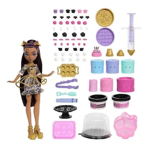 Monster High Kit de Jogo Aniversário 1600 Clawdeen - Mattel Explore a criatividade e a diversão com o Monster High Kit de Jogo Aniversário 1600 Clawdeen da Mattel, perfeito para fãs de Monster High Como parte da linha Monster High Kit de Jogo Aniversário 1600, este kit de bolo Monster High oferece uma experiência lúdica única, na qual as crianças podem ajudar a boneca Clawdeen Wolf a decorar bolos para o aniversário de sua amiga. O conjunto, feito de plástico multicolorido, vem com uma estação de decoração de bolos e vários acessórios para criar o bolo perfeito: empilhe as pastas, use ferramentas para decorar com massa e, em seguida, finalize com acessórios super fofos Assim que as obras-primas da sobremesa estiverem prontas, as crianças podem colocar os bolos em caixas para viagem e entregá-los com estilo. Este kit de bolo, com sua aparência de artesanato, incentiva as crianças a interagir com a boneca de uma forma super prática e criativa, promovendo horas de diversão temática.