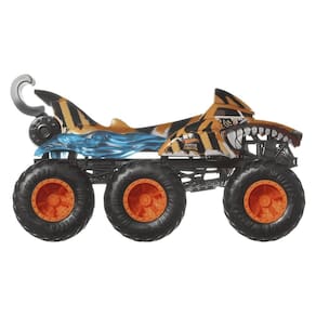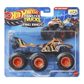 Descrição Detalhada do ProdutoExplore a emoção com o Monster Trucks Tiger Shark da Hot Wheels Mattel. Este veículo robusto, parte da linha Monster Trucks, foi projetado para capturar a essência de personagens favoritos com um design autêntico. Com suas seis rodas imponentes, ele não só garante estabilidade e desempenho em diversas superfícies, mas também oferece a funcionalidade de transportar um Hot Wheels Monster Trucks adicional, seja engatado ou na plataforma. A construção die-cast assegura durabilidade e resistência, ideal para horas de brincadeira intensa. Cada detalhe, desde as decorações vibrantes até a estrutura sólida, reflete a qualidade e a paixão da Mattel por veículos colecionáveis e de ação.Diferenciais/Benefícios Design autêntico com seis rodas, proporcionando estabilidade e um visual imponente para a brincadeira.