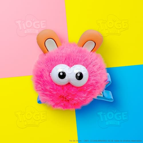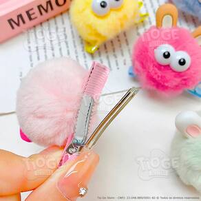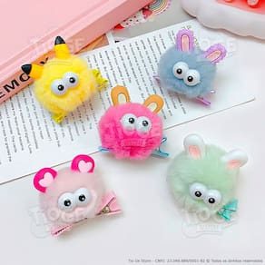 Itens da Embalagem: - 1 Monstrinho Bolinha de Pelúcia Pequeno Presilha Cabelo Maluco Bichinho Olhos Grandes Fofo Engraçado na cor Pink.