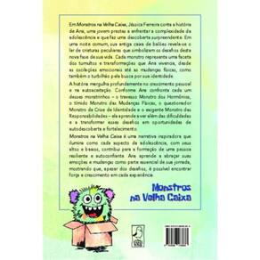 Enfrente os desafios da adolescência com Ana em Monstros na Velha Caixa ! Neste conto emocionante de Jéssica Ferreira, Ana descobre que sua antiga caixa de balões guarda monstrinhos peculiares, cada um representando as mudanças e desafios da adolescência. Do Monstro dos Hormônios ao Monstro da Crise de Identidade, ela enfrenta medos, dúvidas e transformações que toda jovem vivencia nessa fase Com coragem e autodescoberta, Ana aprende que cada desafio é uma chance de crescer e se fortalecer. Monstros na Velha Caixa é Garanta já o seu e inspire-se com Ana nessa jornada única! Marca: ALBATROZINHO EDITORA