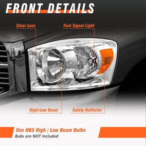- Compatibilidade do veículo: montagem do farol compatível com Dodge Ram 1500/2006-2009 Dodge Ram 2500 3500 2006-2009.??High /Farol baixo: H13, feixe do sinal de mudança de direção: 3157A (lâmpadas não incluídas)